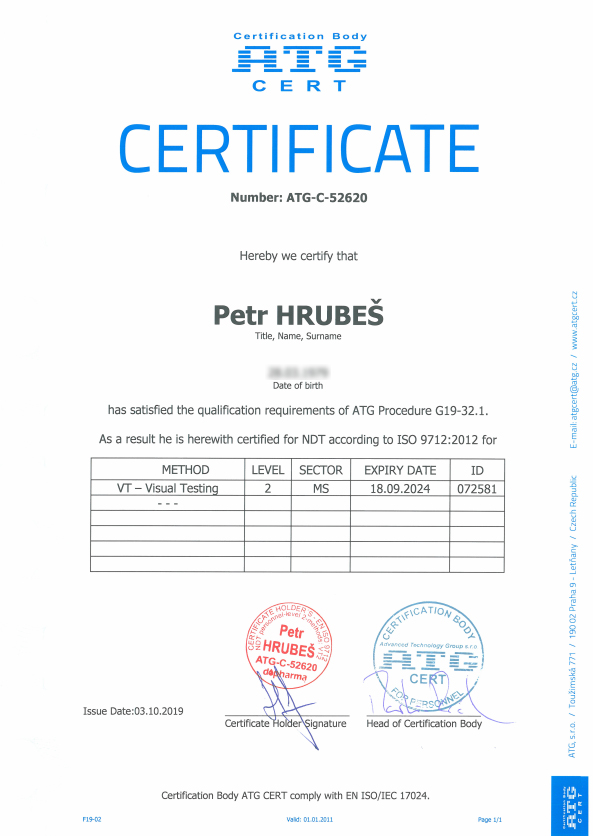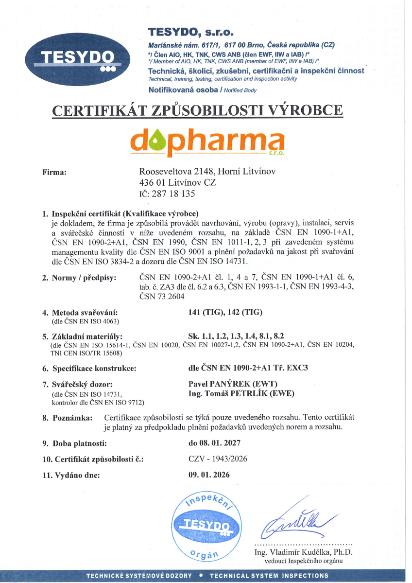 Certifikát způsobilosti výrobce 2025